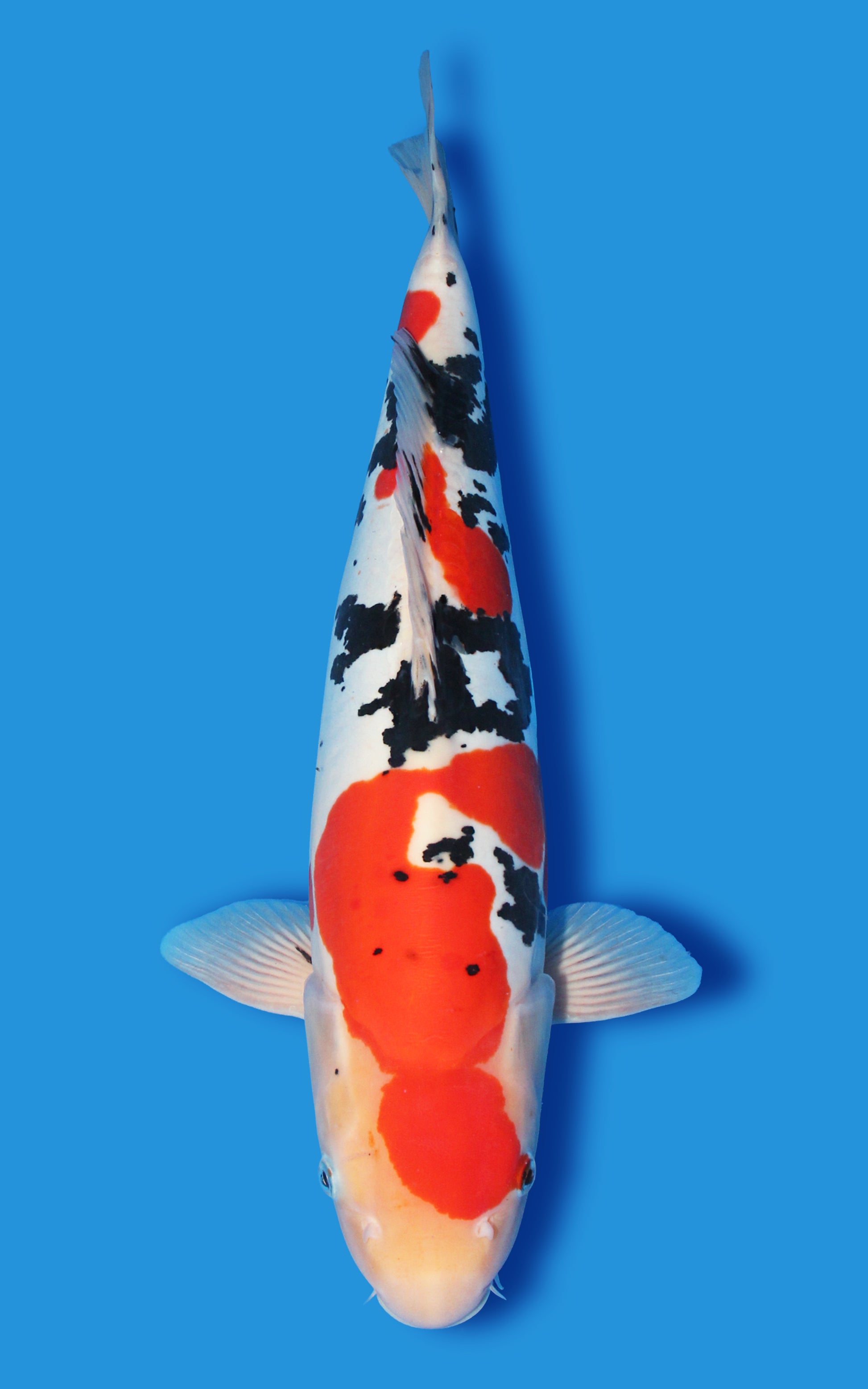 - Sanke (Taisho Sanke) – A white-bodied koi with red and black markings. Similar to Showa but with a lighter feel and no black on the head.
